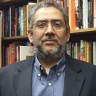 Ernesto Martínez, “el camarero bizco”, mostrando la mesa donde Vargas Llosa se sentaba para trabajar en la redacción de La ciudad y los perros.